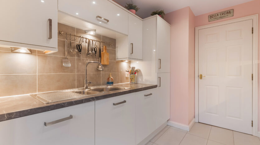 The apartment forms part of an attractive low-rise development surrounded by well-maintained communal grounds and residents’ parking. Internally, it has been tastefully decorated and is presented in excellent condition throughout. The accommodation comprises a welcoming entrance hallway, a generous and bright lounge, and a contemporary fitted kitchen complete with integrated appliances and space for dining. There are two well-proportioned double bedrooms, both with built-in wardrobes, while the principal bedroom further benefits from an en-suite shower room. A stylish, fully tiled bathroom with a modern three-piece suite completes the accommodation.